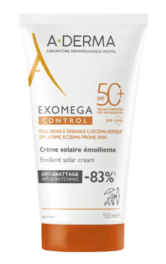 A-DERMA EXOMEGA CONTROL CREMA SOLAR EMOLIENTE SPF 50+ 150 ML. Crema muy alta protección solar con SPF 50+.