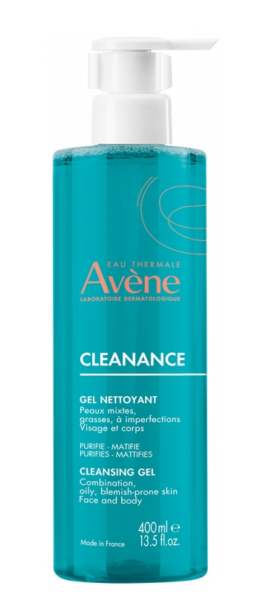 AVÈNE CLEANANCE GEL LIMPIADOR 400ml.  Higiene de las pieles grasas y con tendencia acneica.