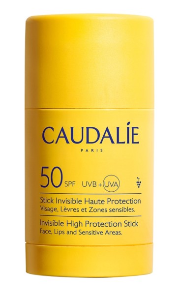 CAUDALIE SOLAR STICK INVISIBLE 15GR. El Stick Invisible de Alta Protección SPF50 & PA++++ protege en un solo gesto el rostro, los labios y las zonas sensibles (lunares, cicatrices, tatuajes) de los rayos UVA/UVB sin dejar restos.