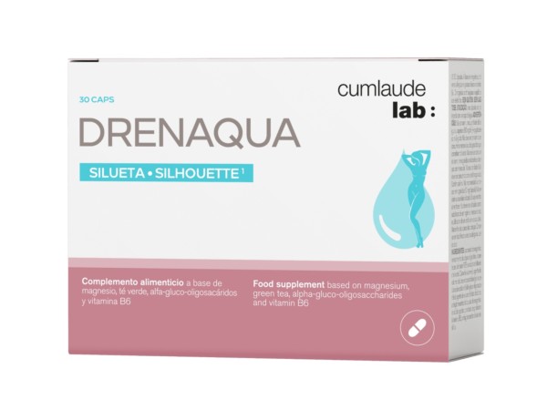 CUMLAUDE DRENAQUA 30 CÁPSULAS. Cumlaude Drenacua está compuesto por lactobacilus y bifidobacterias que favorecen el tránsito intestinal gracias a los prebióticos y probióticos que aportan, por té verde que ayuda a eliminar líquidos de forma natural y por suplementos de potasio y magnesio que favorecen la eliminación de líquidos y ayuda a restablecer el balance electrolítico.