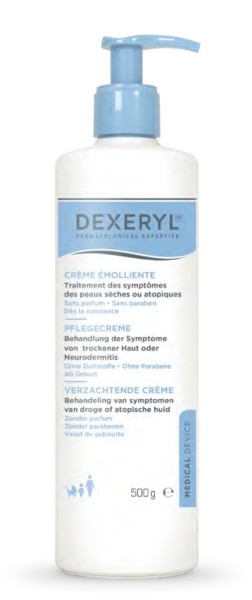 DEXERYL CREMA CORPORAL 500ML. Crema de protección cutánea destinada al tratamiento de los signos y síntomas de la sequedad de la piel (xerosis) en particular en varias afecciones cutáneas (tales como dermatitis atópica, ictiosis).