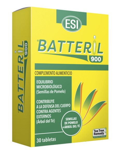 ESI BATTERIL 900 30 TABLETAS. Es un complemento alimenticio a base de de semillas de pomelo y concentrado de aceite esencial de árbol del té.