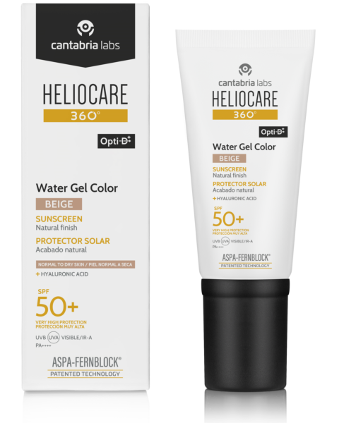 HELIOCARE 360º COLOR WATER GEL PROTECTOR SOLAR SPF 50+  COLOR BEIGE 50ML. Deja un acabado suave y realza el brillo natural de la piel, efecto buena cara.