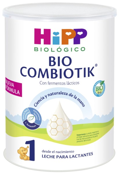 HIPP LECHE INFANTIL COMBIOTIK 1. Esta leche es una leche de continuación para bebés recién nacidos, natural y 100% biológico. Pensado para niños con problemas de lactancia materna.