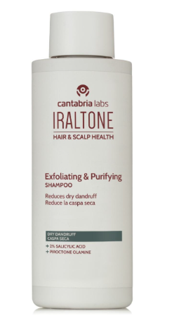 IRALTONE CHAMPÚ EXFOLIANTE PURIFICANTE 200ML. Respeta el equilibrio natural del cuero cabelludo devolviéndole su hidratación natural, y eliminando la caspa seca.