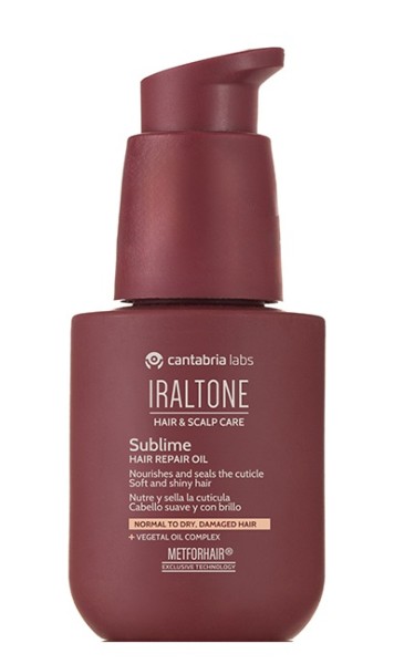 IRALTONE SUBLIME HAIR REPAIR OIL 50ML. El aceite reparador de IRALTONE HAIR & SCALP CARE nutre y sella la cutícula, consigues un cabello suave y con brillo.