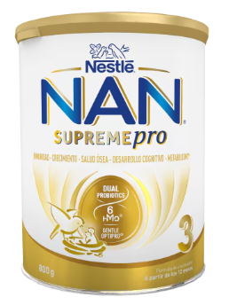 NESTLE NAN 3 800GR. Leche de crecimiento en polvo para bebés a partir de los 12 meses que, junto con otros alimentos, forma parte de una alimentación diversificada para el bebé.