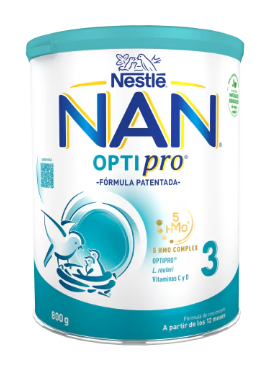 NESTLE NAN 3 OPTIPRO 800 GR. Preparado lácteo infantil especialmente desarrollado para ayudar a reforzar el sistema inmunitario del bebé a partir de los 12 meses. Contiene entre otros Probióticos (L. reuteri), optipro y minerales y vitaminas.