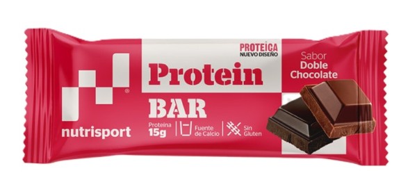 NUTRISPORT BARRITA PROTEICA DOBLE CHOCOLATE 1 UNIDAD. Complemento dietético de proteínas lácteas con minerales y vitaminas para la rápida recuperación y cubrir las necesidades aumentadas en el esfuerzo físico intenso.