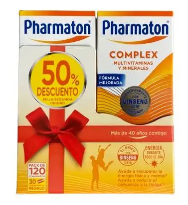 PHARMATON COMPLEX PACK PROMO 120 COMPRIMIDOS Cuando estás cansado, todo te cuesta más. Sientes que las cosas te superan. En épocas de cansancio, necesitas un plus de energía para seguir con tu día a día sin dejar de sentirte bien. Pharmaton Complex es la solución que gracias a su combinación única de vitaminas y minerales, con exclusivo extracto estandarizado de Ginseng G115®, actúa eficazmente contra el decaimiento y te ayuda a recuperar la energía.