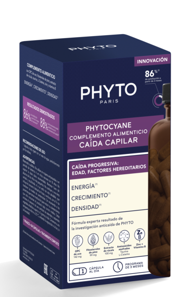 PHYTO PHYTOCYANE CAPSULAS CAIDA CRÓNICA 3 MESES 84 CÁPSULAS. Phytocyane complemento alimenticio indicado para la caída capilar, caída progresiva: edad, factores hereditarios.