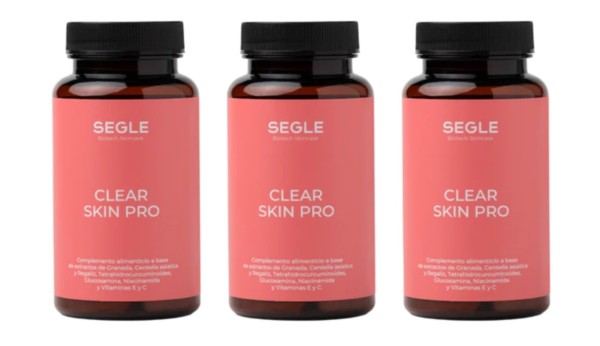 SEGLE CLEAR SKIN PRO es un complemento nutricional con acción antidespigmentante, antioxidante, reafirmante y antiinflamatoria. gracias a la combinación de vitaminas C, E, Niacinamida y Extractos de granada, cúrcuma y regaliz.