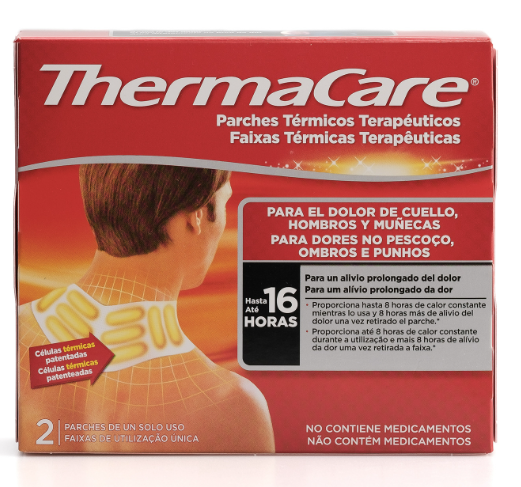 THERMACARE PARCHES TÉRMICOS PARA CUELLO HOMBROS Y MUÑECAS 2 unidades. Eficaz contra el dolor. Profunda relajación muscular. Alivio prolongado del dolor.