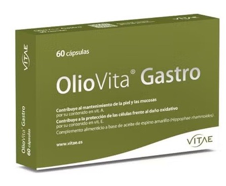 VITAE OLIOVITA GASTRO 60 CAPSULAS. OlioVita Gastro es un complemento alimenticio a base de Aceite de Espino amarillo y Betaglucanos que contribuye al mantenimiento de las mucosas digestivas y del sistema inmunitario.